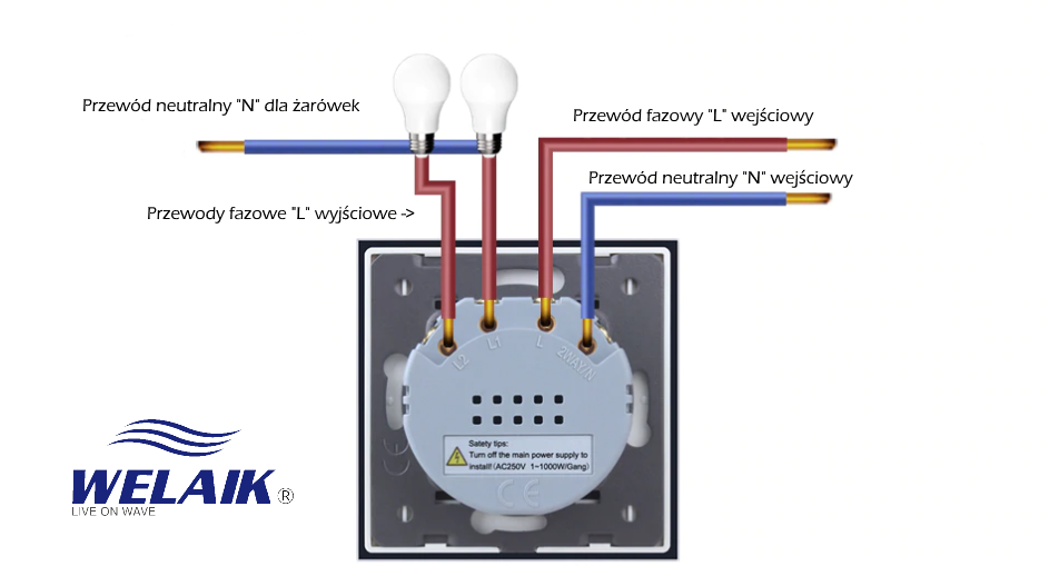 Włączniki WELAIK pracują na standardowej instalacji elektrycznej. Zasilane napięciem 230V. Wykorzystujemy standardowe puszki elektryczne 60-tki. Nie jest wymagana specjalna instalacja elektryczna aby cieszyć się z dotykowych włączników Welaik.