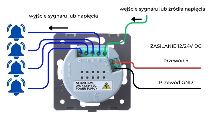 SCHEMAT PODŁĄCZNIA MODUŁU A941 CH (12-24V)
